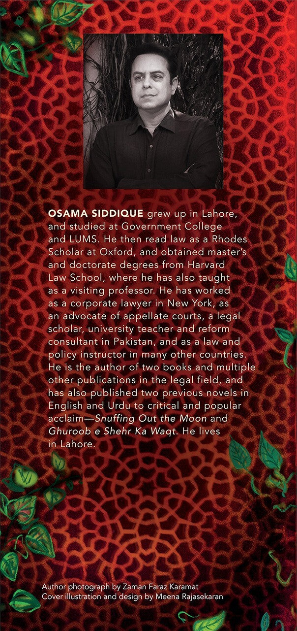 OSAMA SIDDIQUE grew up in Lahore, and studied at Government College and LUMS. He then read law as a Rhodes Scholar at Oxford, and obtained master’s and doctorate degrees from Harvard Law School, where he has also taught as a visiting professor. He has worked as a corporate lawyer in New York, as an advocate of appellate courts, a legal scholar, university teacher and reform consultant in Pakistan, and as a law and policy instructor in many other countries. He is the author of two books and multiple other publications in the legal field, and has also published two previous novels in English and Urdu to critical and popular acclaim—Snuffing Out the Moon and Ghuroob e Shehr Ka Waqt. He lives in Lahore.